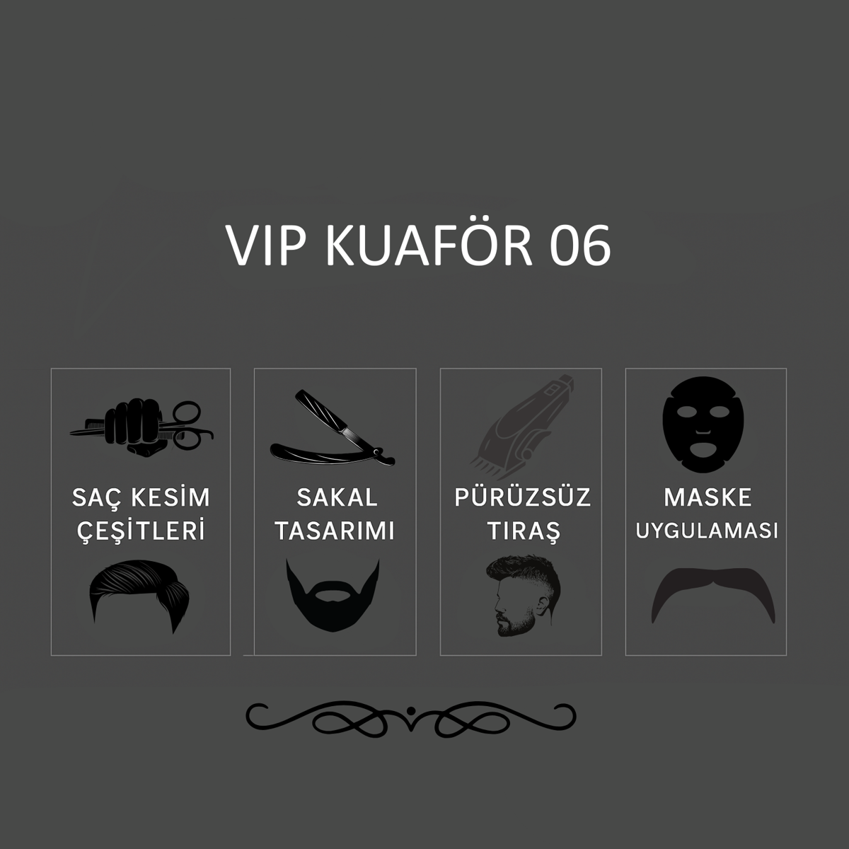 Erkekler için profesyonel saç kesimi, bakım ve cilt hizmetleri sunan VIP Kuaför 06,...